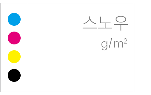 도서 본문에 주로 사용하는 용지로 불투명도가 높아 다른 용지에 비해 뒤비침이 덜합니다. 쓰기 및 필기가 필요한 도서에 적합합니다. | 도서의 표지에 많이 사용하며 광택이 없어 은은하고 고급스러운 느낌을 내는 용지입니다. | 도서의 표지에 많이 사용하며 스노우와 반대로 광택이 우수하여 사진이나 인물 등을 돋보이게 하는 용지입니다. |