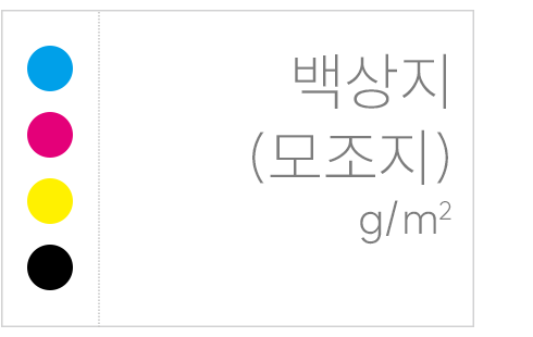 소설 ∙ 화보 ∙ 팜플렛 등의 표지로 사용되며 종이 자체의 질감을 살려 고급스러운 느낌을 주는 용지입니다. | 학습지 및 전집 등에 주로 사용하며 코팅층의 형성으로 광택이 있어 매끄러운 표면과 색상 재현력을 제공합니다. 필기보다 그림이나 사진이 많은 도서에 적합합니다. | 교재 및 수험서에 주로 사용되며 고급 백상지로 일반 백상지 대비 두께는 얇지만 뒤비침은 향상시킨 용지로, 부드러운 표면과 색상 재현력을 제공합니다. 쓰기 및 필기가 필요한 도서에 적합합니다. |