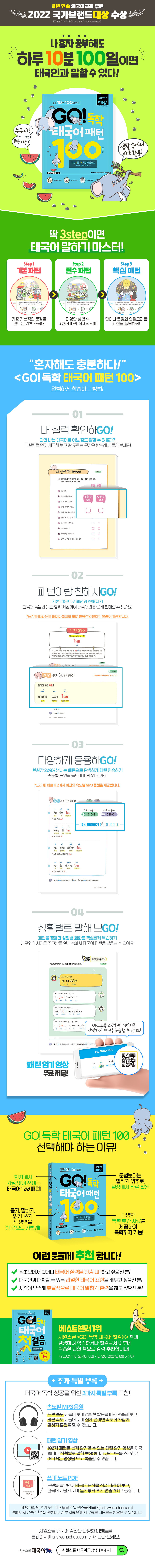 <GO! 독학 태국어 패턴 100> 하루 10분 100일 완성 [본책+MP3+태국어 쓰기 노트 PDF+ 패턴 암기 영상]BESTMD