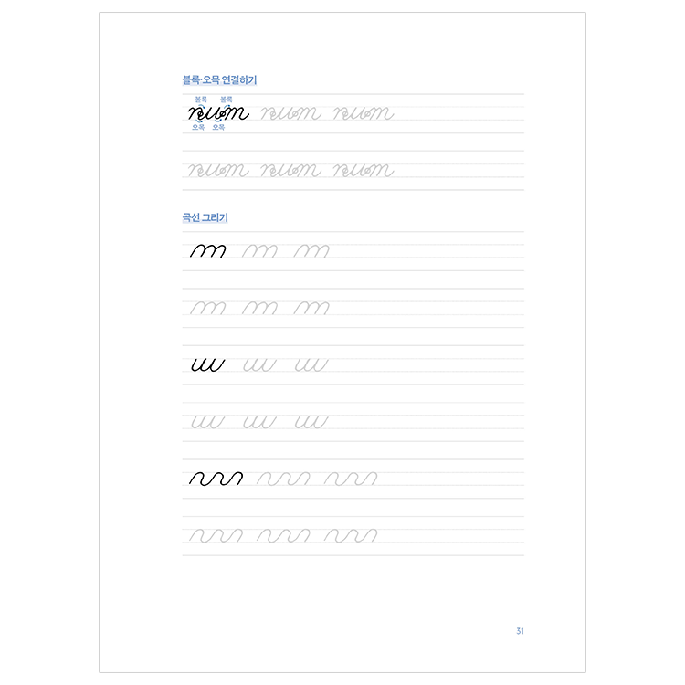 1) 필기체의 원리 : 글자의 바닥끼리 이어주기
